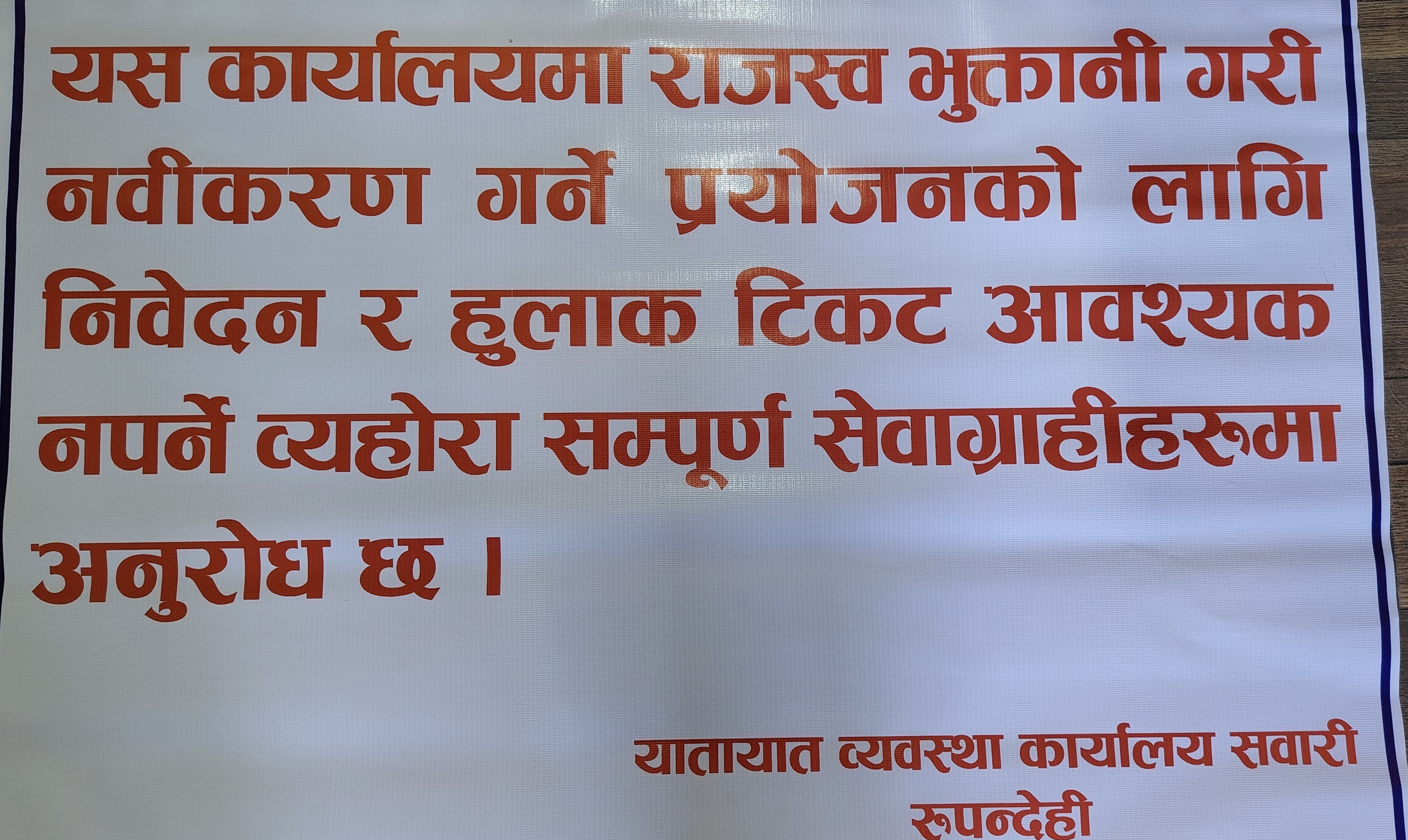 लुम्बिनी प्रदेश सरकार अन्तर्गतको उद्योग, पर्यटन तथा यातायात मन्त्रालयको मातहतमा रहेको यातायात व्यवस्था कार्यालय (सवारी) बुटवल उपमहानगरपालिका-१३, बेल्बासमा अवस्थित छ ।सवारी तथा यातायात व्यवस्था ऐन, २०४९, सवारी तथा यातायात व्यवस्था नियमावली, २०५४, लुम्बिनी प्रदेशको सडक सवारी, यातायात तथा परिवहन ऐन, २०७६, यातायात व्यवस्थापन कार्यविधि निर्देशिका, २०६० तथा लुम्बिनी प्रदेशको सालबसाली आर्थिक ऐन बमोजिम यस कार्यालयले सवारीको राजस्व (सवारी साधन कर, नवीकरण दस्तुर तथा सेवा सम्बन्धी अन्य दस्तुर) सङ्कलन गरी दाखिला गर्ने, सवारी दर्ता गर्ने, सवारी नामसारी गर्ने, सवारी दर्ता प्रमाणपत्र (ब्लुबुक) नवीकरण गर्ने, सवारी दर्ता प्रमाणपत्र (ब्लुबुक) को प्रतिलिपि जारी गर्ने, सवारीको प्राविधिक परीक्षण गर्ने, जाँचपास प्रमाणपत्र जारी तथा नवीकरण गर्ने, प्रदुषण जाँच गर्ने एवम् यातायात सेवा व्यवस्थापनको लागि सार्वजनिक सवारीको रुट इजाजतपत्र जारी तथा नवीकरण गर्ने लगायतका सेवाहरु प्रदान गर्दै आएको छ ।